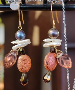 Fermoir en Acier avec Perles Tchèques, perles d’eau douce et feuille rose en verre et gemme d’acier