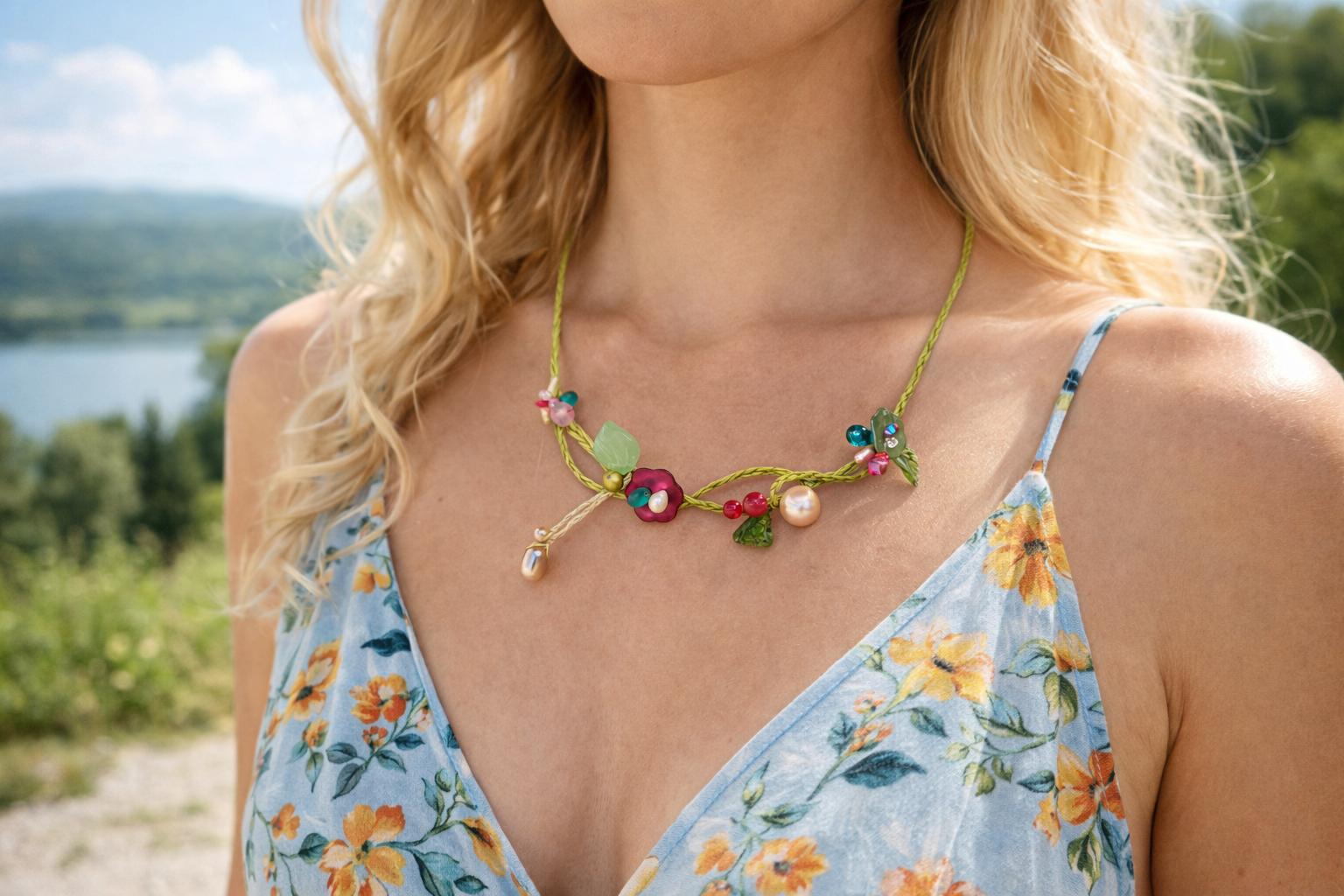 Collier vert et rose été